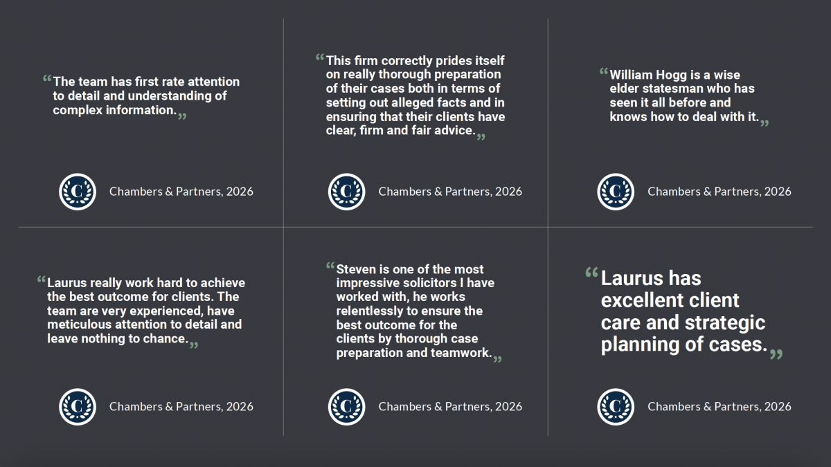 "Laurus has excellent client care and strategic planning of cases. The team has first rate attention to detail and understanding of complex information. Its lawyers are always on hand, work punctually and to a high standard."